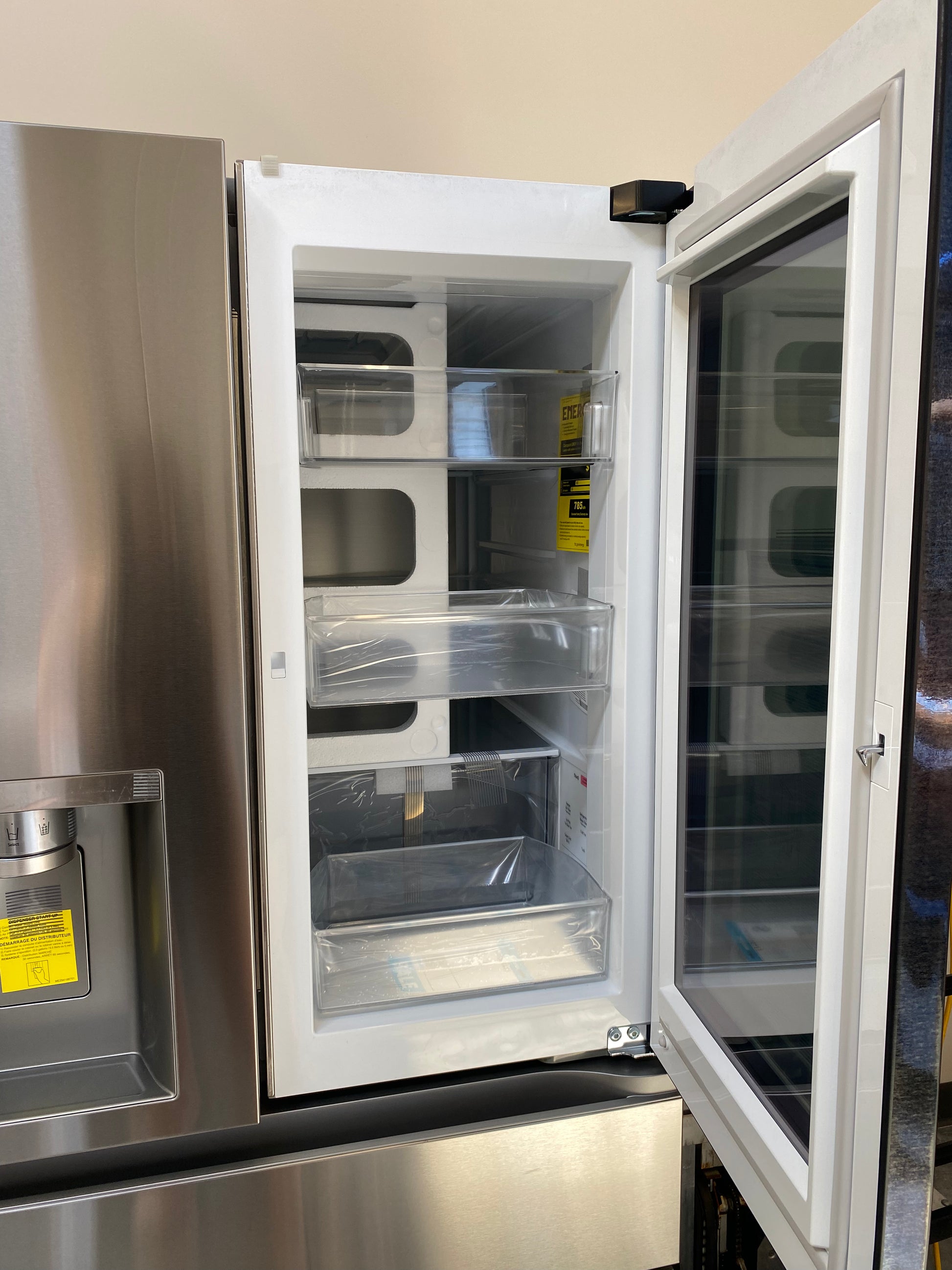 InstaView® Door-in-Door® with MyColor™: Knock twice to illuminate the mirrored glass panel, allowing you to see inside without opening the door. Customize the panel's color to match your kitchen or mood